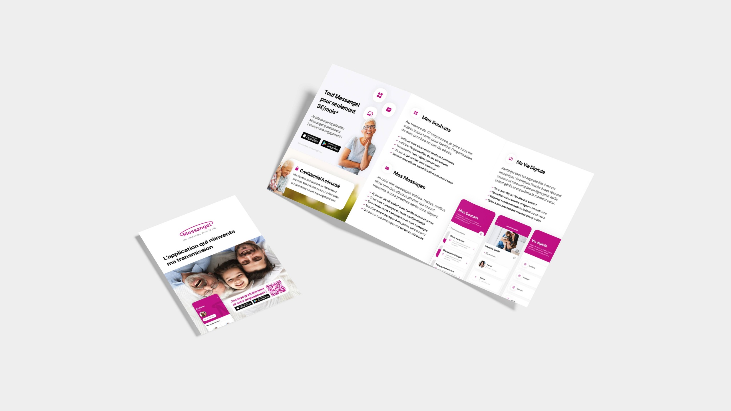Conception de l’UX/UI de l’application Messangel, dédiée à la création et à la transmission de souhaits et messages posthumes. Travail sur l’identité visuelle, la direction artistique et le webdesign, ainsi que sur la communication de la marque à travers ses supports digitaux et vidéo. Une approche complète mêlant stratégie, expérience utilisateur et cohérence graphique.